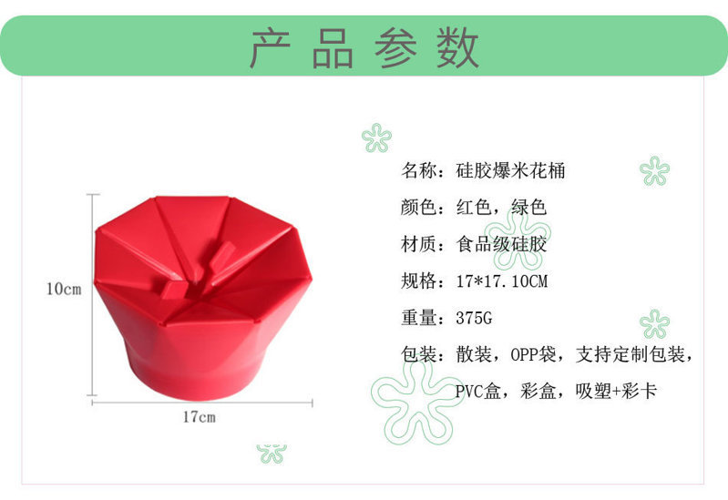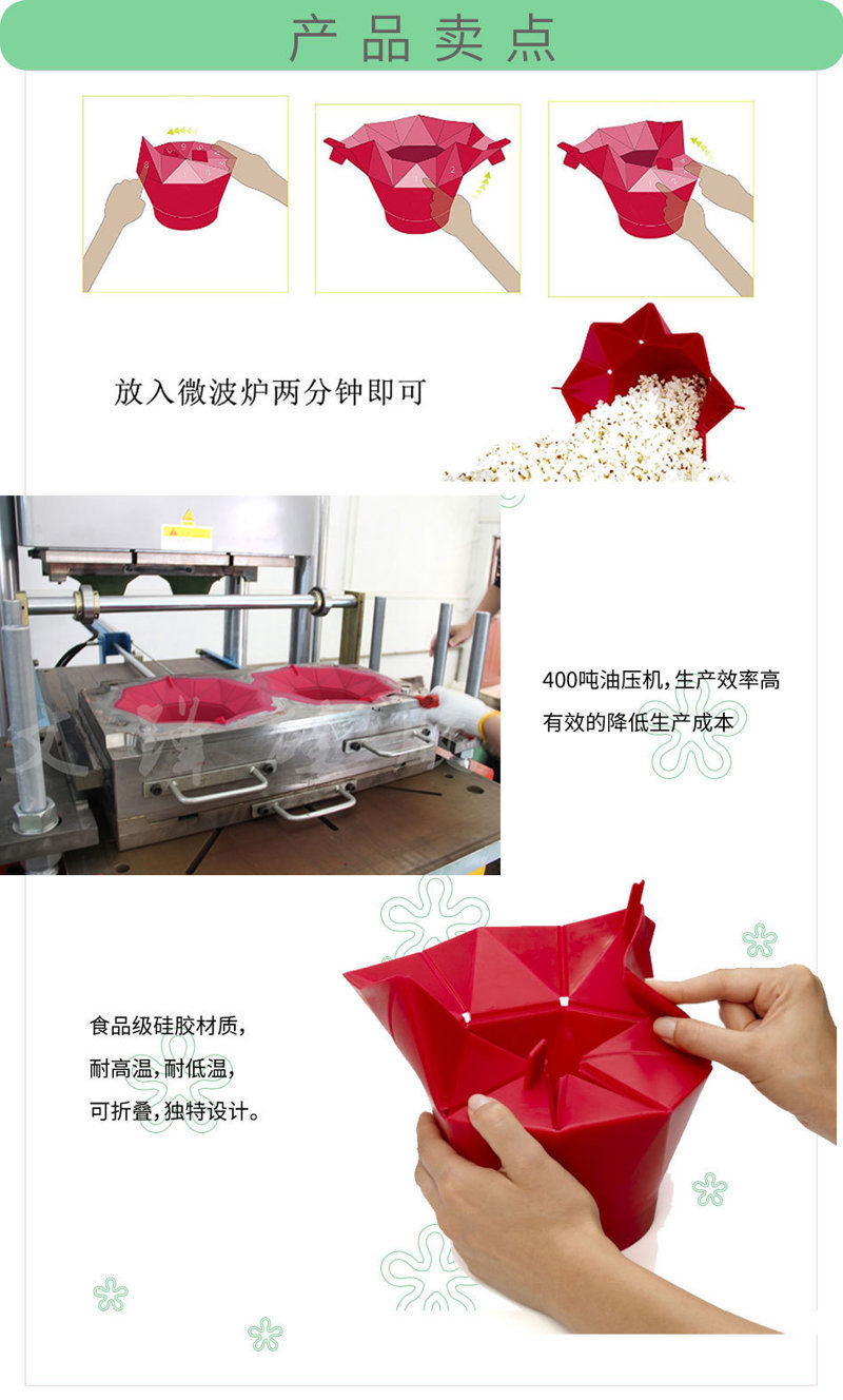 產品用途:適用于微波爐、冰箱,可重復使用的家用爆米花桶。